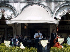 Naxina und Giorgio kauften unverzüglich einen alten Kaffee-Shop, der ihnen unter der Procuratie Vecchie an der Ecke Sotoportego dei Dai angeboten wurde. Dieser Platz, der allgemein heute als Markusplatz bezeichnet wird, war damals für den Ausschank von Malvasia Wein bekannt, der Geist und Körper stärken sollte. Doch mit dem plötzlich aufkommenden Kaffee-Boom änderten Kaufleute und Händler schnell ihre Vorliebe vom Wein zum Kaffee. 1830 wurde das Caffe Quadri ausgiebig durch die Vivarini Brüder restauriert und erhielt dabei größtenteils das heutige Aussehen. Bei diesem Umbau wurde auch das Restaurant im oberen Stockwerk eröffnet. Die Räumlichkeiten im Erdgeschoss, mit ihren unverwechselbaren Stuckarbeiten, erhielten einen neuen Anstrich, dominierend in den Farben hellgrün und gelb. Die später zugefügten, herrlichen Wandgemälde stammen von Giuseppe Ponga und zeigen Szenen des täglichen Lebens aus der Blütezeit Venedigs. Während der Besetzung Venedigs ( 1796 - 1866 ) avancierte das Quadri zum "Lieblingskaffeehaus" der österreichischen Soldaten. Zwei Jahrhunderte später hat die Welt sich komplett verändert, nur in Venedig und dem Quadri ist vieles noch wie früher. Die besondere Lage am Markusplatz, die Eleganz und der spezielle Charme des Quadri ziehen wie einst Persönlichkeiten aus der ganzen Welt an. Gehörten damals berühmte Zeitgenossen wie z.b. die Schriftsteller Stendhal, Alexander Dumas, Marcel Proust, Honore de Balzac, Poet Lord Byron oder Komponist Richard Wagner zu den Gästen, so sind es in der heutigen Zeit bedeutende Politiker wie Michail Gorbatschow, Francois Mitterant oder Schauspielstars die an den Filmfestspielen in Venedig teilnehmen wie z.b. Woody Allen, Brad Pitt, Pierce Brosnan, Robert de Niro, Anthony Quinn und viele andere. Das wunderschön gestaltete Caffe unter den Arkaden des Markusplatzes bietet neben hervorragenden Köstlichkeiten einen romantischen Blick auf die Piazza San Marco mit ihrer prächtigen Basilika. Das Restaurant im Obergeschoss ist einzigartig, weil es das einzige der Stadt mit Blick auf den Markusplatz ist. Die elegante Einrichtung und intime Atmosphäre bietet einen exklusiven Rahmen für ein romatisches Dinner ...